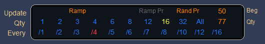 Arp and Echo beats are selected from within a list, or 4x precision beats (beyond that shown) can be built manually, and saved.
